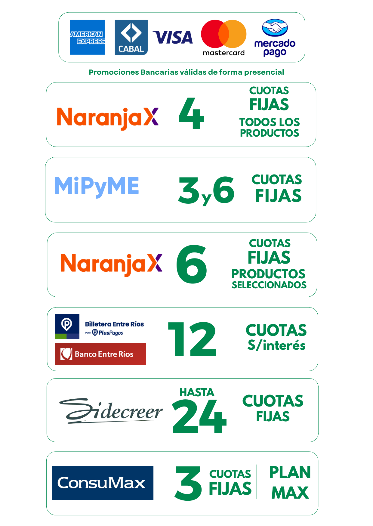 Por compras superiores a $95.000 las entregas son sin cargo dentro de la ciudad de Concordia (Entre Ríos).